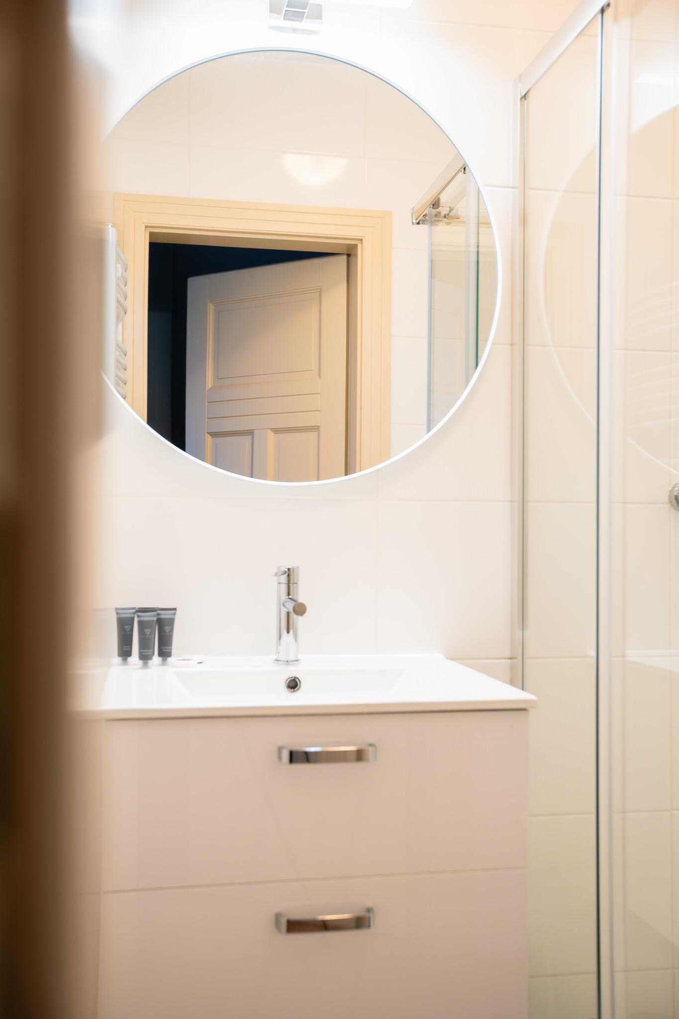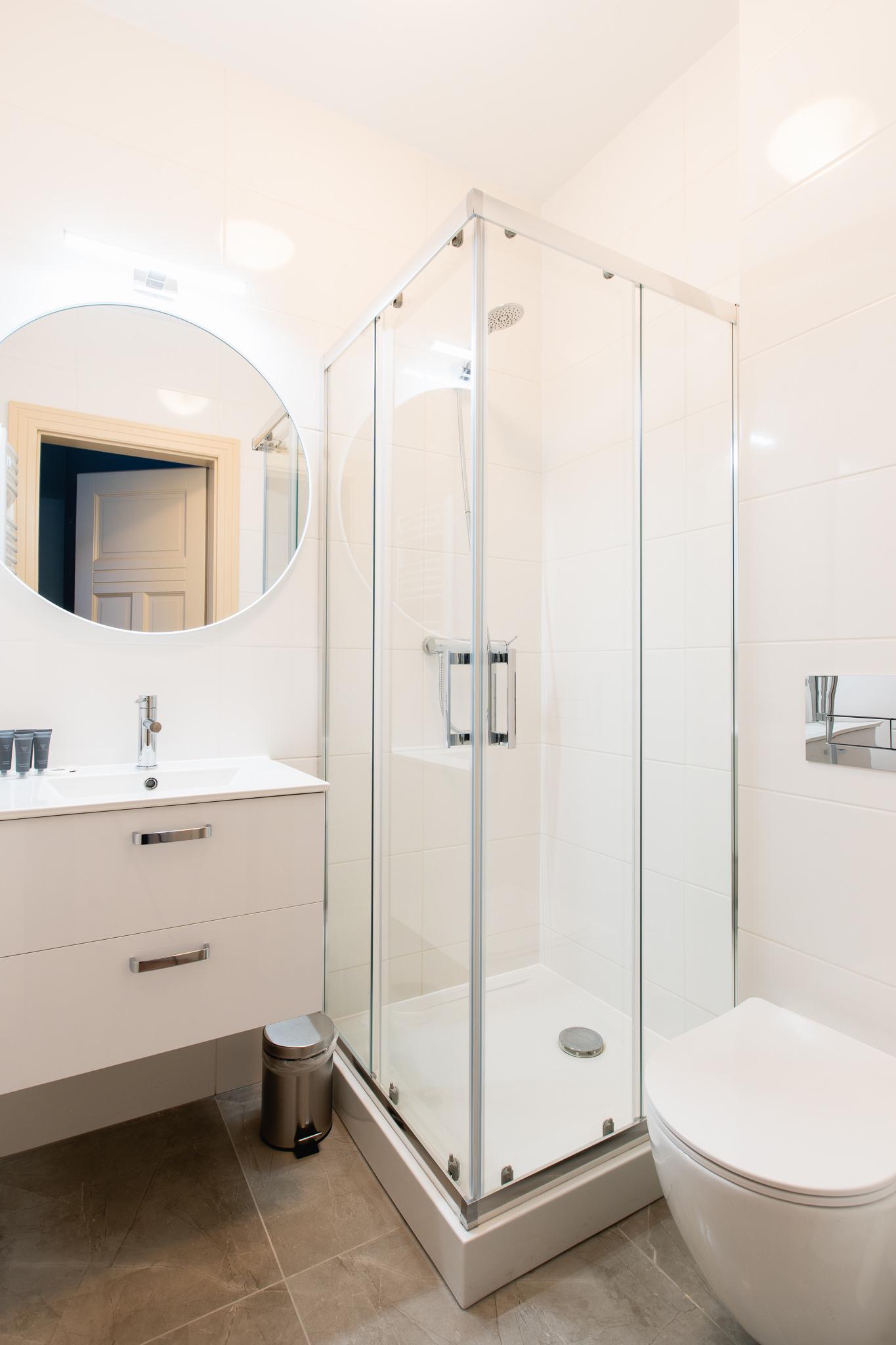 , prywatna łazienka z prysznicem, bezpłatnym zestawem kosmetyków i suszarką do włosów,